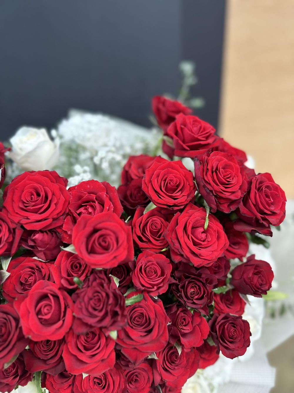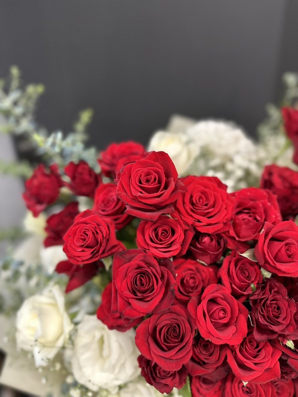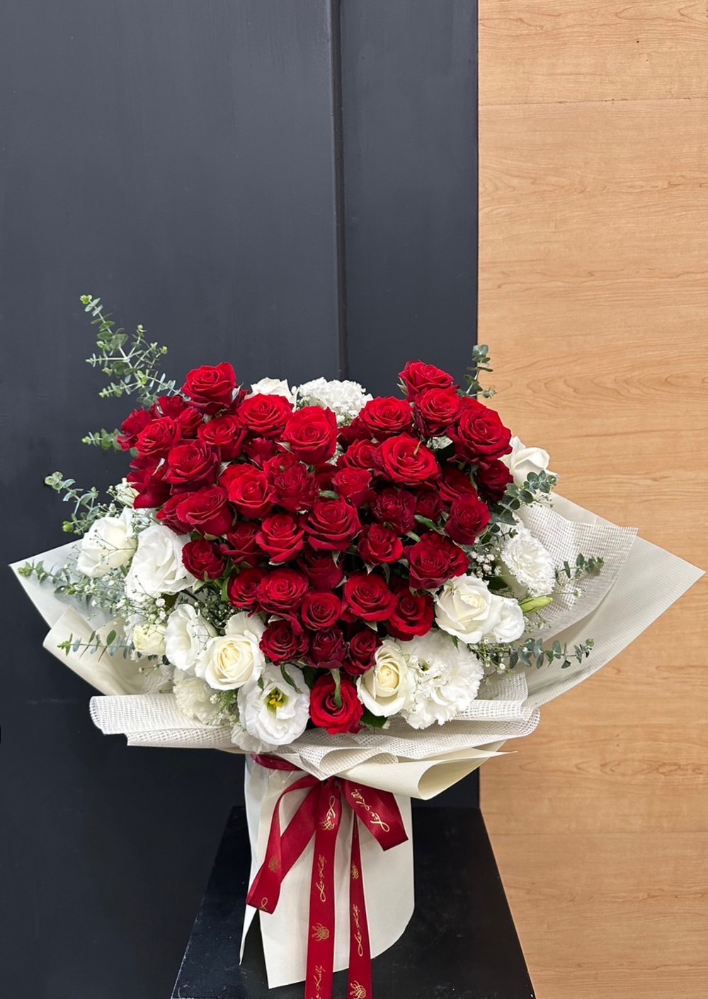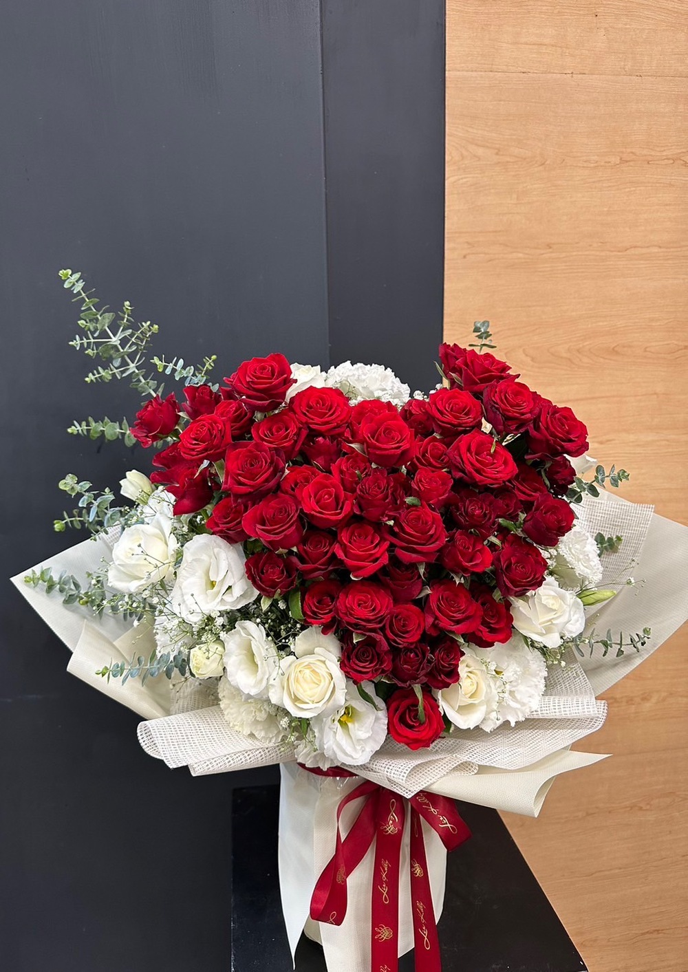 商品花材:紅玫瑰、白桔梗、尤佳利葉 總尺寸:約35-40cm(W)x60cm(H) 鮮花鑑賞期限約3-5天,但花材也會因環境、氣候、溫度等因素而影響其保存天數。 ※ 花市偶有臨時性的花材缺貨或品質不佳的情形,請同意讓我們花藝師以新鮮花材為您做專業設計調整。