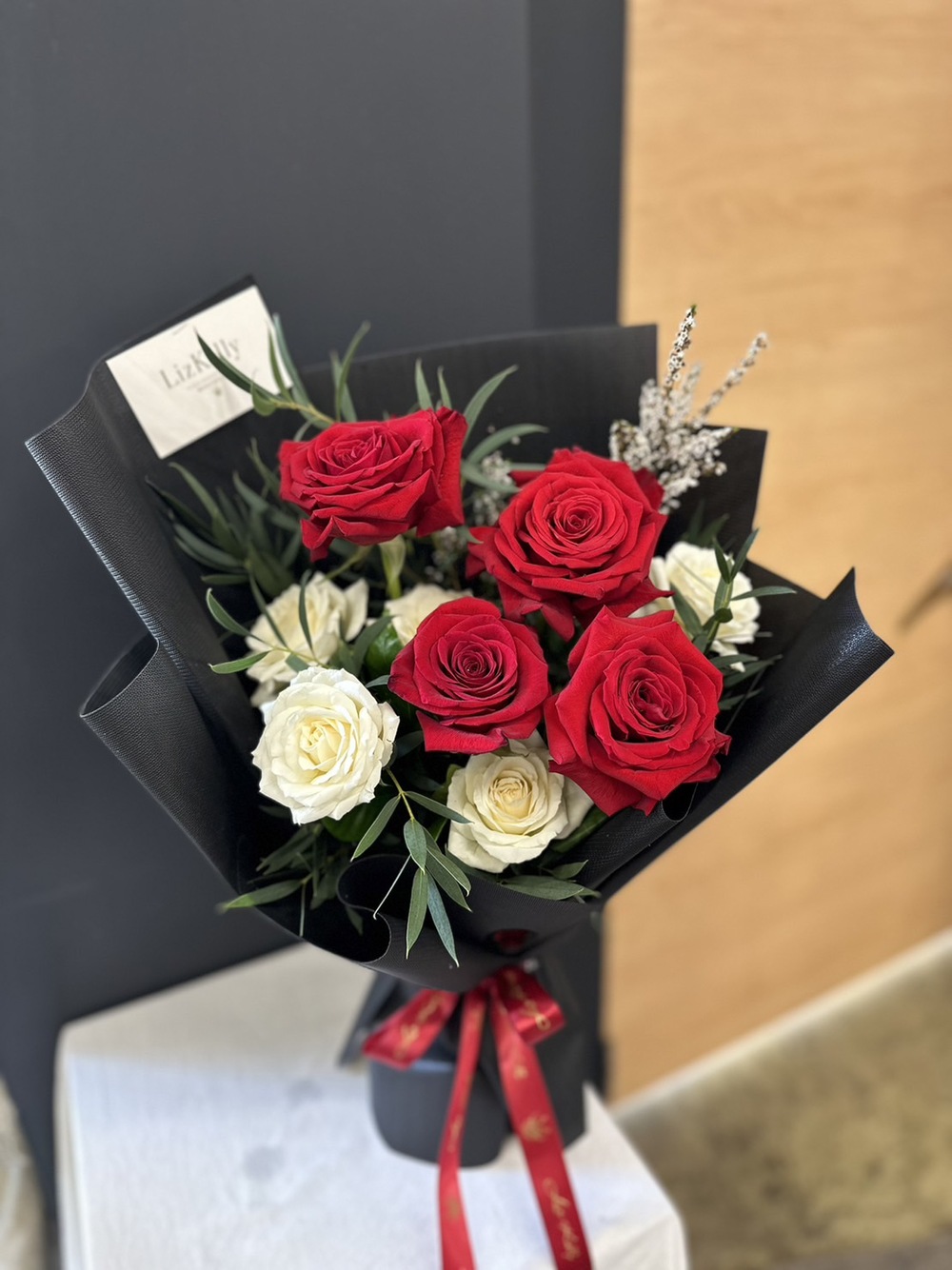 商品花材:進口紅玫瑰、白玫瑰、雪梅、尖葉尤加利 總尺寸:約30-35cm(W)x35cm(H) 鮮花鑑賞期限約3-5天,但花材也會因環境、氣候、溫度等因素而影響其保存天數。 ※ 花市偶有臨時性的花材缺貨或品質不佳的情形,請同意讓我們花藝師以新鮮花材為您做專業設計調整。